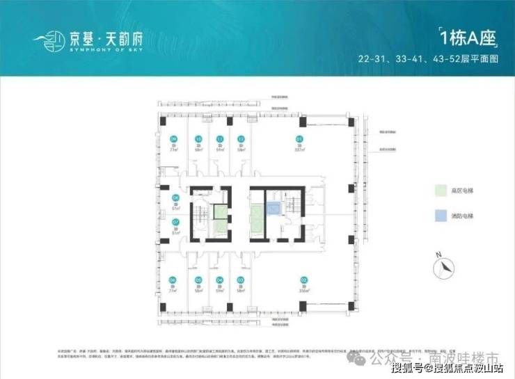 🉐低区7梯22户(6-19层);高区5梯12户(22-52层)
