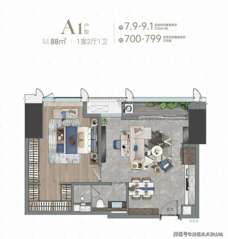 •硬伤:低区88㎡户型存在暗卫问题;部分西北向房源视野受邻近楼栋遮挡;得房率仅70%,公寓的通病,低于住宅平均水平。