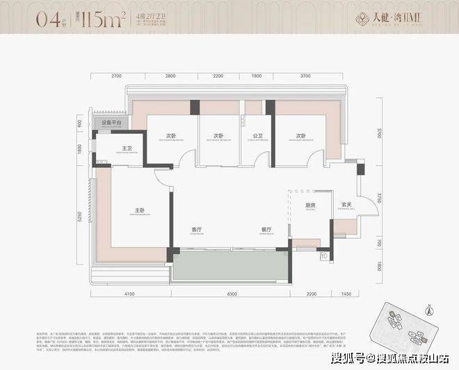 这个户型设计比较亮点的是餐客厅都能出阳台,而不是单边客厅出阳台。由于户型核心筒本身就外延了,不太受楼体遮挡也有充足的景观。对于115㎡户型来说,能够让整个客厅和阳台拥有同样的开间,可以把厅的开阔感做出来。