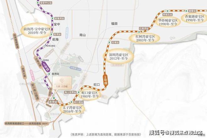 项目距2号线(豪宅线)与5号线(发展线)首发赤湾站约300m(直线距离),从此,坐地铁而不是站地铁,未来新小南山隧道(预计2027年竣工)、望海路升级等重大交通配套持续落地,咫尺间连通蛇口、前海。线路基本上贯穿深圳东西核心区,譬如深圳湾、前海、深超总、留仙洞总部这些知名地带