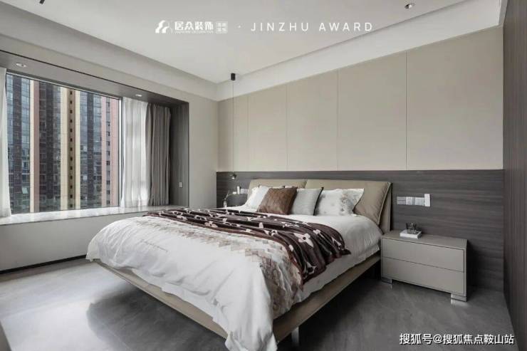 在这个看得见风景的私密空间里,原木饰面的包围流露着温润氛围。而主卧空间的布局,无论是回型动线下的化妆区、还是临窗而设的阅读角,关于人的交互或独处都一一兼顾到。