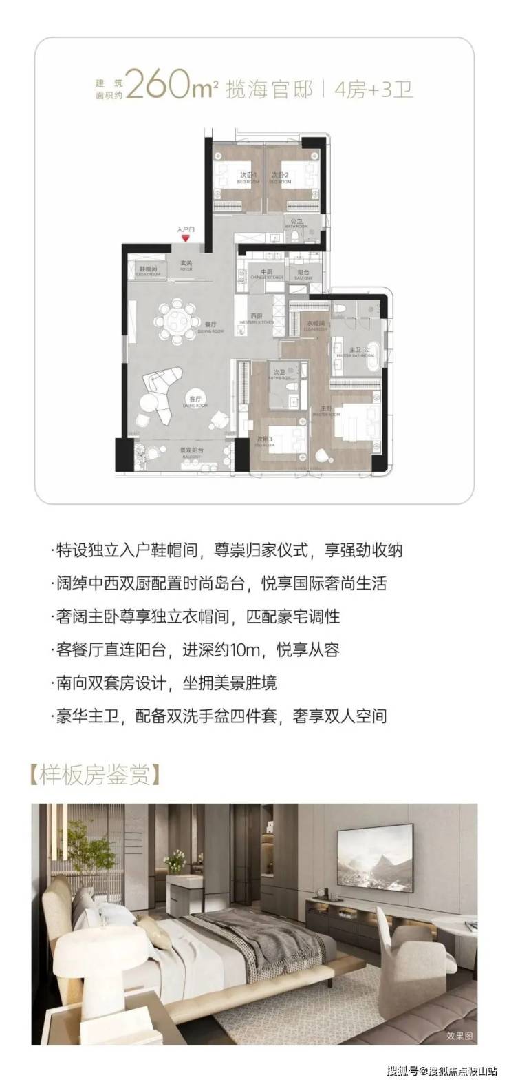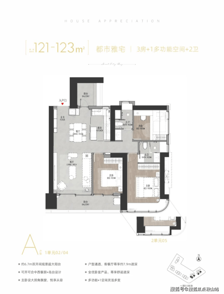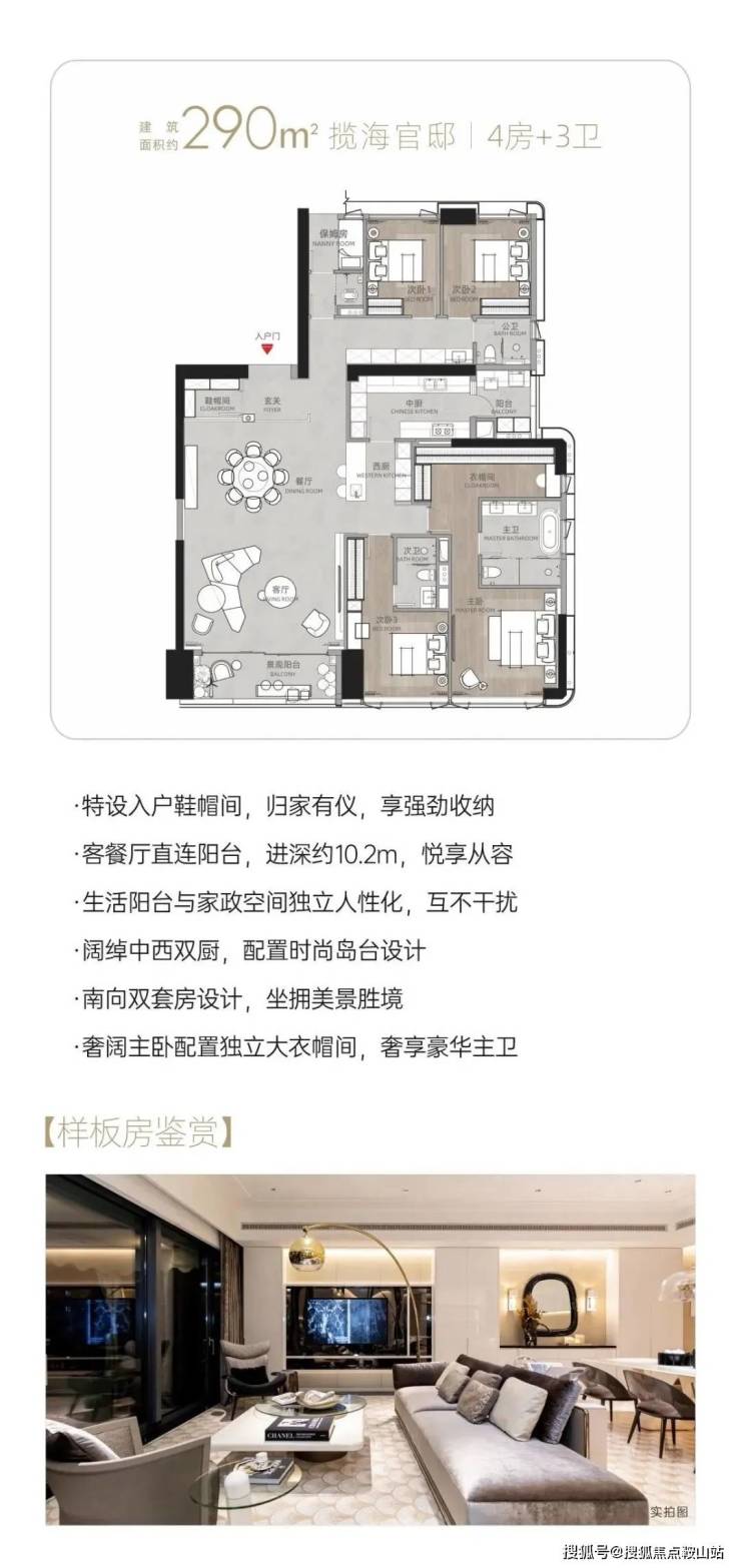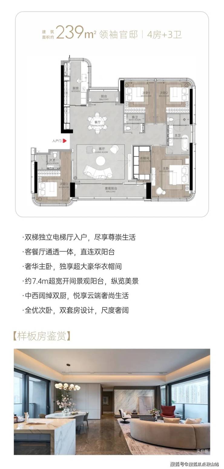 约6.7m双开间观景超大阳台可开可合中西餐厨+岛台设计主卧设大拐角飘窗,户型通透,客餐厅7.9m进深全优卧室产品,尊享舒适进深多功能+1空间灵活多变。