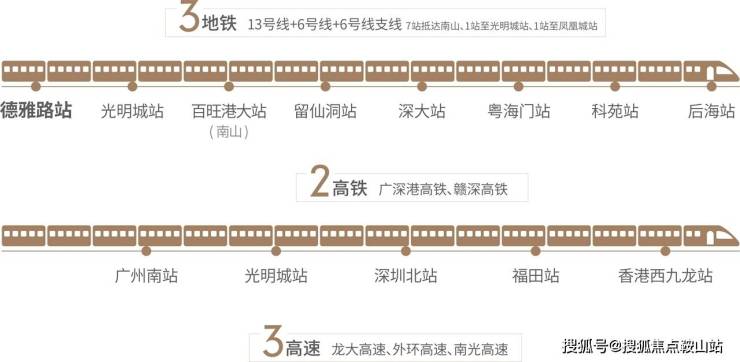 广深港高铁(已通车):1站深圳北,2站福田CBD,3站直达香港、广州