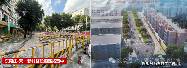 -主动退地改善道路面貌:东莞庄路(天河源筑)道路拓宽施工,未来将拓宽为双向四车道,前广场焕新升级中