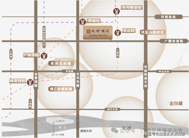 【真天河】距离珠江新城约4.5KM,太古汇等天河核心商圈约3KM