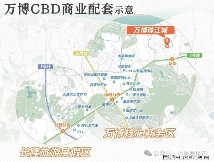 大型商业商场类似的就要去到两公里处的万博了,万达广场、天河城、四海城....等大型购物中心都有,未来还会有万象系商业、K11进驻,可以说商业这方面完全不用过多担心。
