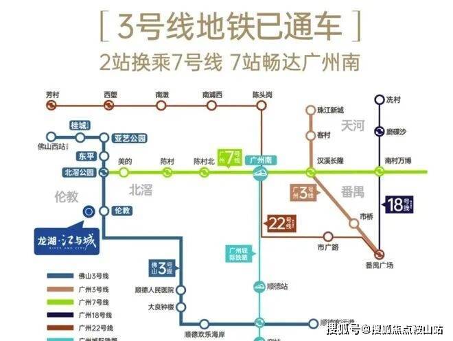 交通:项目紧邻佛山地铁 3 号线伦教站,2022 年 12 月 28 日已开通,2 站可换乘 7 号线,9 站到广州南。同时一桥通番禺,出门即上 105 国道,轻松开启广佛半小时通勤生活圈。