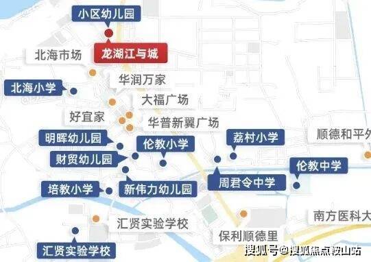 教育:自身配建 4800㎡幼儿园,周边还有北海小学、汇贤实验中学、伦教中学等 10 所名校,教育资源丰富。