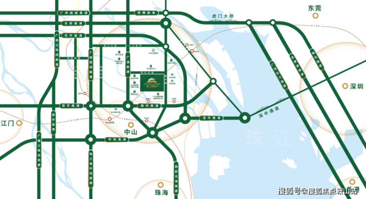 中山·龙大创新园项目位于火炬开发区内的民众街道,地处粤港澳大湾区内核,享有全市“一港一轨五路”的综合性交通枢纽,形成了“五横四纵”的多维立体路网。园区距离民众南收费站仅两公里,可通过南中高速快速接驳深圳、珠海、广州等大湾区核心城市。