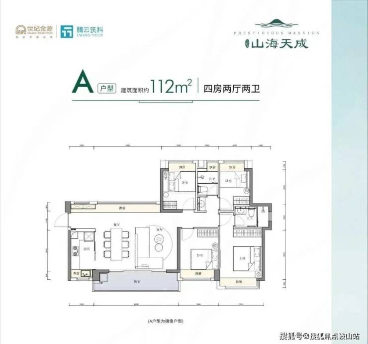 112㎡的4房2厅2卫,设计的是横厅南北通透格局,客餐厅6.2米开间,三开间朝南,4个卧室分别是3.3米/2.9米/2.5/2.4米的宽度,全屋飘窗,U型厨房,公卫三段式分离设计, 得房率:80.14%(不含赠送),6.2米长的超大阳台,朝正南或西南朝向,看花园景观。