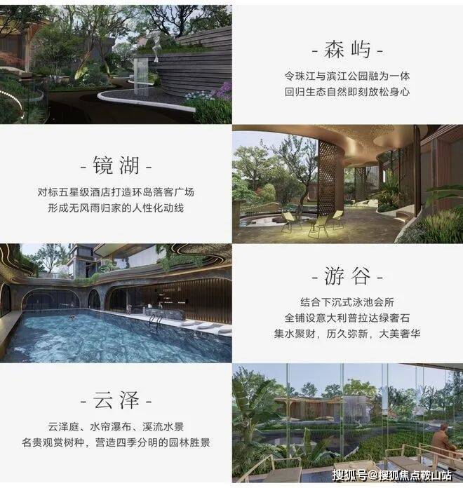 由亚太顶尖汇张思大师团队操刀设计,灵感源自全球限量游艇阿斯顿马丁 AM37,将流动柔美线条与珠江流水相呼应,使建筑犹如一艘停靠在珠江边的豪华游艇。蓝调国际大师主笔,以珠江为源头,匠心打造森屿、镜湖、游谷、云泽 “四重景观礼序”,塑造优雅归家动线。设计大师团队还将酒店生活哲学融入会所,对标香港瑰丽酒店及深圳湾安达仕酒店,首层及负一层配建五星级酒店式双会所、下沉式泳池等超配空间,打造圈层私属社交场。