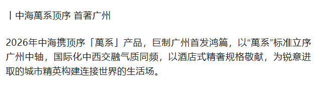 丨顶序萬系 广州中轴首个低密纯粹板楼豪宅
