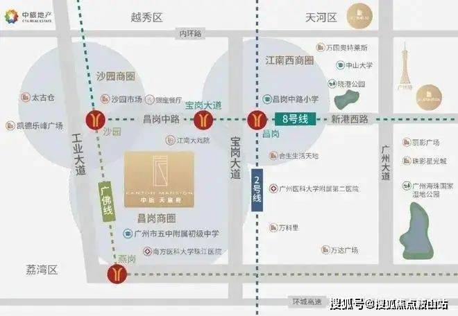 旅天宸府位于海珠昌岗中路与宝岗大道交汇处,宝岗大道、工业大道、江南大道,海珠三大黄金走廊环绕,可谓是海珠核心地段。