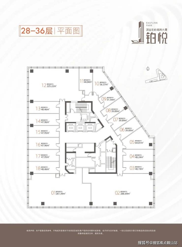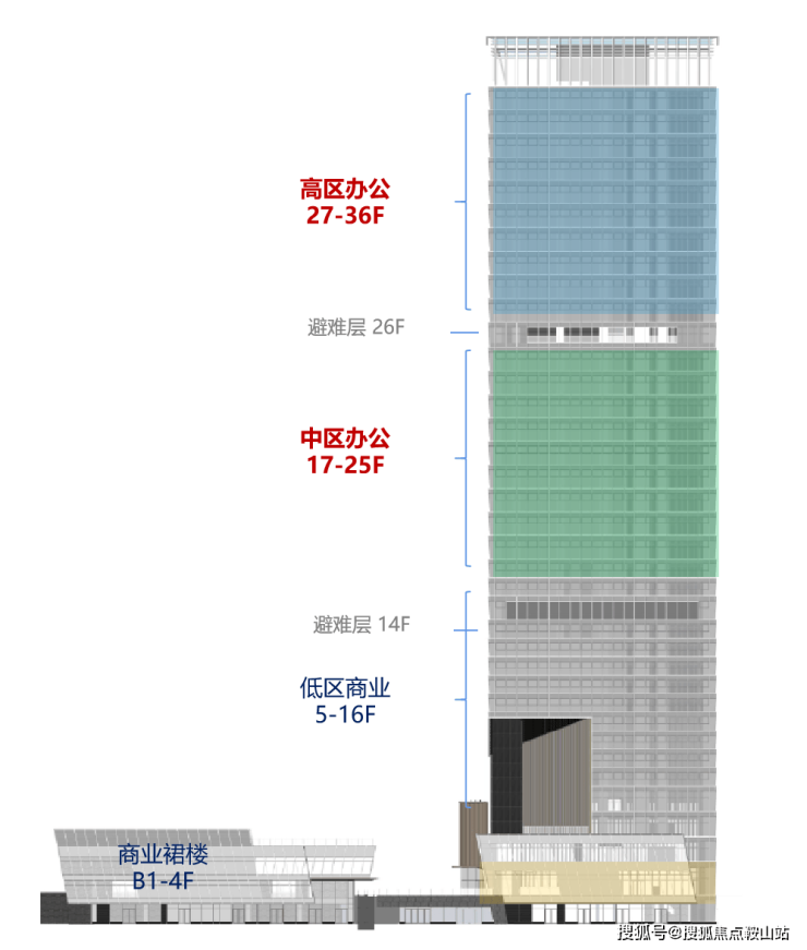 塔楼办公:位于17-36层,整体面积约27767.36㎡,单层面积约1460㎡
