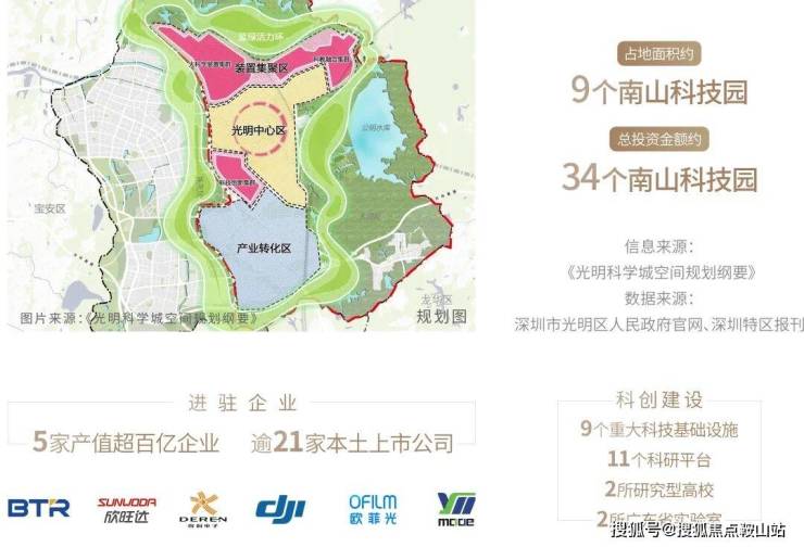 深圳光明区,规划为世界一流科学城和深圳北部中心,光明科学城为广深港科创走廊重要节点,以“一心两区”为蓝图,定位打造“中国新硅谷”,战略地位堪比硅谷之于美国旧金山、张江之于上海浦东,聚集24个创新载体建设,强势驱动科技国际化进程。
