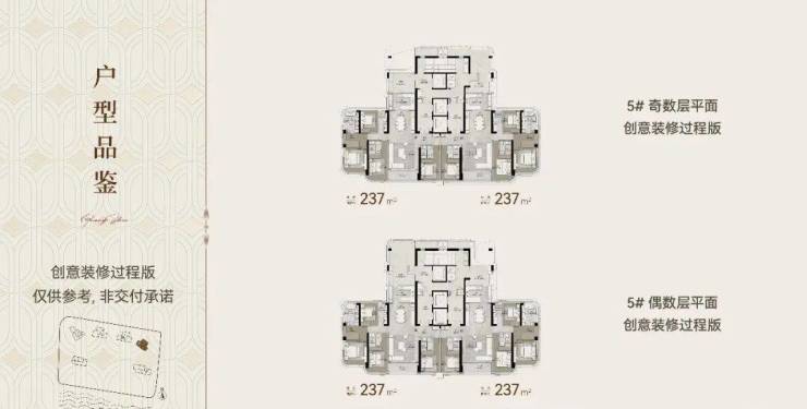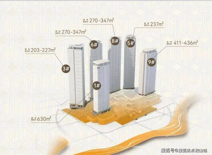 项目产品涵盖205-630平户型,呈半围合式布局,户户朝南、户户一线望江。