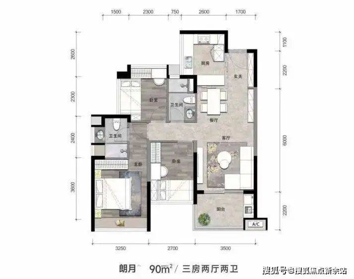 【朗月】90㎡,3房2厅2卫
