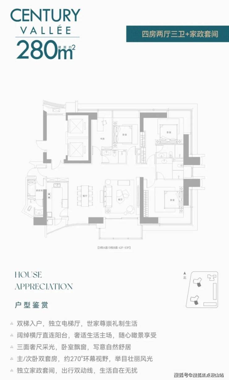 还是定位相当高端的纯大平层而且还是无敌景观视野,8梯3户,233㎡/280㎡配备两个独立电梯,386㎡双梯设计,实在任性!