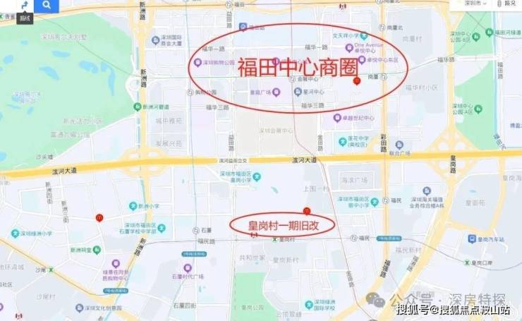 皇岗村改造项目,位于福田福民路与皇岗二街交汇处西北角,紧邻深圳地铁7号线皇岗村站,地处深圳中心的核心腹地。