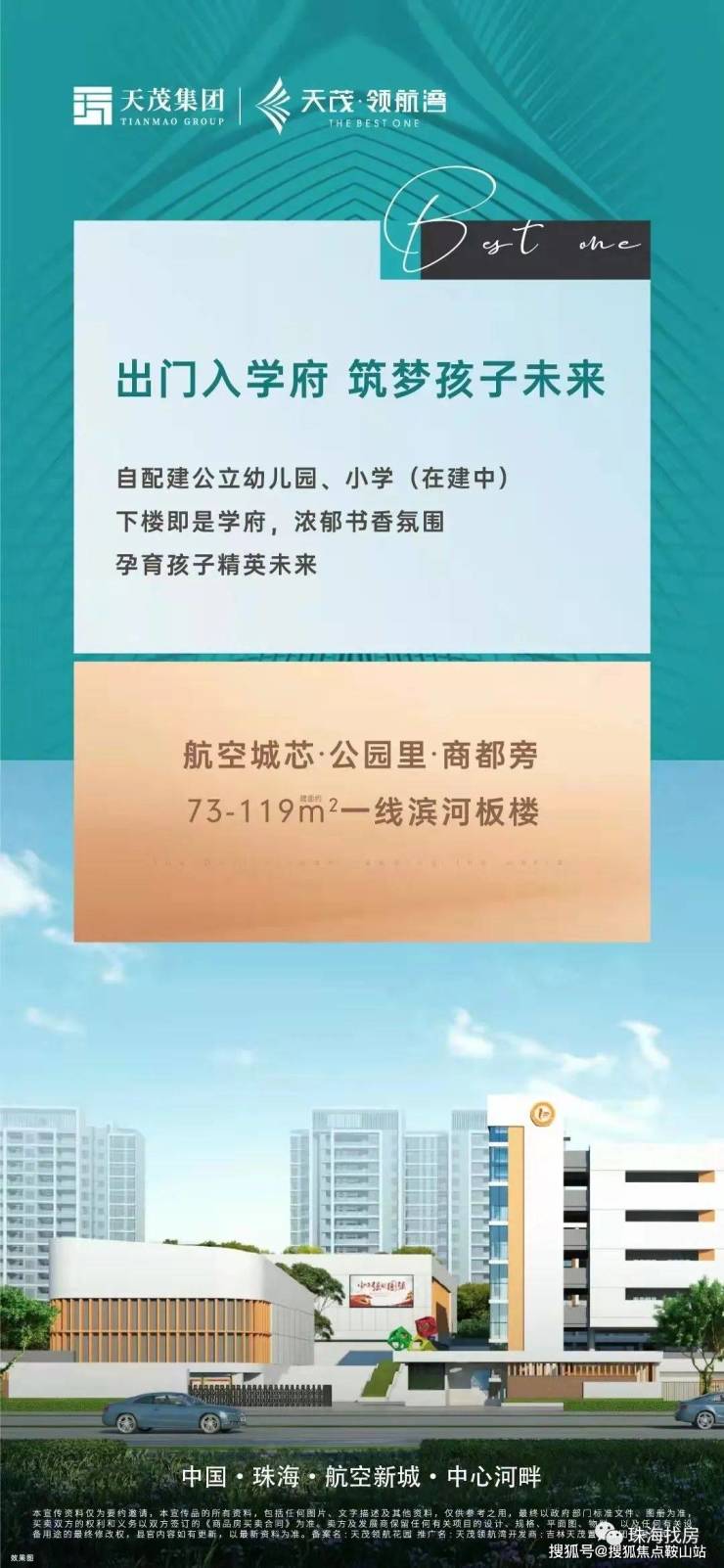 天茂集团,以前瞻性眼光,择址珠海航空新城,打造前公园,后商都,自配建公立幼儿园、小学等满配标杆之作——天茂·领航湾。