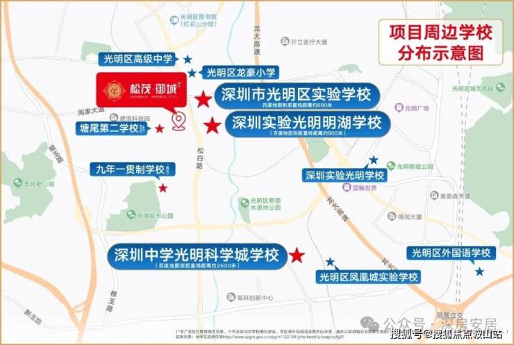 根据2024年光明区教育局最新的学区划分,小学学区划分在教科院实验小学,秋硕小学,龙豪小学,光明实验学校,初中学区划分在深圳中学光明科学城学校二初中部,凤凰城实验学校初中部。