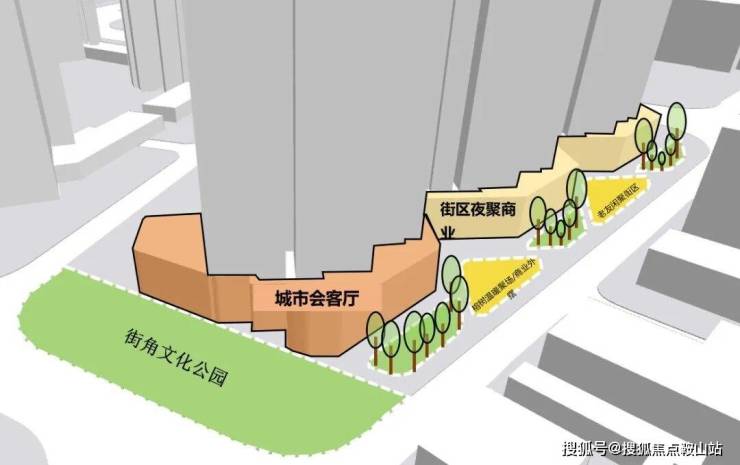 据了解越秀熙悦江湾将打造全新“广”府新产品,定位中高端,融入了岭南特色、粤韵其中,流出的方案设计图曝光了一些细节:城市会客厅、街角文化公园、榕树。
