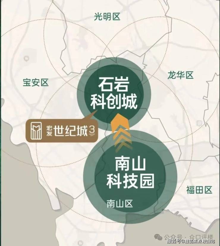 南山科技园北部石岩科创城,连续6年占据宝安工业总产值和增加值“双第一”。项目据守石岩科创城中芯门户,地处宝安、南山、龙华、光明四区交汇点,坐享"科创引擎+四区辐射”双重发展红利,或将成为南山科技园人才新兴居住地。(信息来源:宝安区统计局)