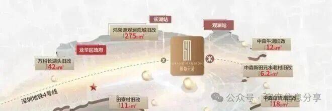 本案一路之隔约275万㎡鸿荣源巨无霸观城旧改,未来超2000万㎡城市更新体量,汇集卓越、华润、鸿荣源等品牌房企,将为片区带来新的活力,升级居住品质和城市面貌,带动片区居住人群圈层的提升,推动观澜发展,区域价值腾飞