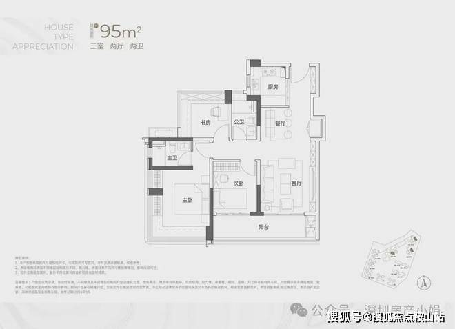 主力户型解析:95-138㎡全能3-4房,适配全家庭需求建面约95㎡ 三房两卫• 格局:传统竖厅设计,南北通透,空间利用率拉满,得房率约95%-97%。• 亮点:3.5米客厅开间,搭配6.3米宽大阳台(连通客厅与次卧),晾晒、观景两不误;主卧与次卧配备270°全景飘窗,东北向享大南山景,西南向望小区花园。