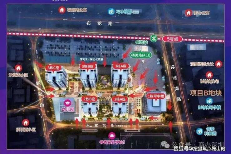 双轨干道:步行200米即达地铁5号线杨美站,2站接驳地铁10号,4站直达深圳北站。坂银通道、南坪高速、清平高速等干道环绕,快速打通福田、罗湖中心,导流全市庞大工作、生活客群,成就财富新磁场。