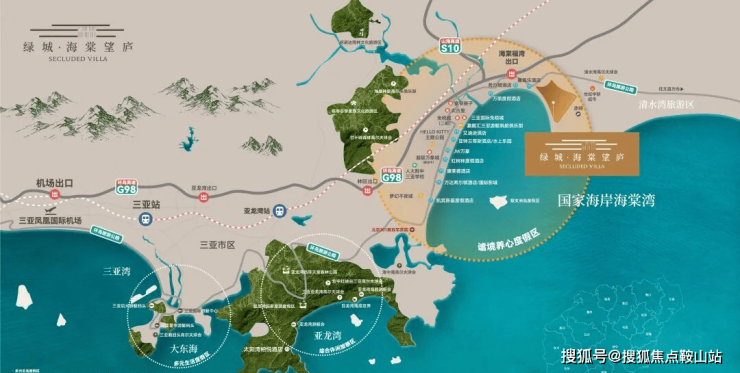 1小时度假生活圈:紧邻G98海南环岛高速,到凤凰国际机场约50公里,距离海棠湾站约10公里,1小时从容国际度假