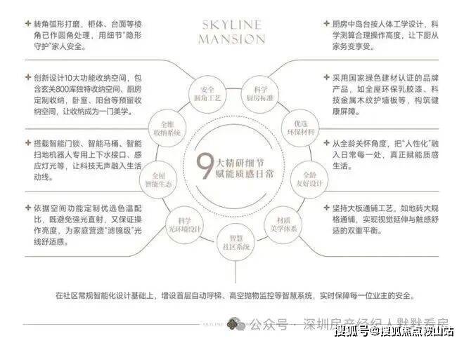项目核心亮点在于其 “双公园环抱,天赋生态秘境”的绝版环境、 “全龄颐乐,身心康养”的社区主张 以及 “颐安匠心,隐逸营造”的品牌表达。其一为 “藏于城市绿肺,私享千亩山林”,毗邻清林径森林公园与八仙岭公园,坐拥不可复制的湖光山色与超高负氧离子含量,是深圳都市圈内罕见的 “可居住的国家森林公园” 级生态住区。其二为 “全维度康养服务体系”,社区内规划有健康管理中心、中医养生馆、恒温泳池、环形登山步道、禅修茶室、社区农场等,并引入专业健康管理团队,为全龄段家庭成员提供从身体到心灵的全面颐养服务。其三为 “低密合院,再现东方院落情怀”,部分产品采用合院形制,通过围合、错落的设计,在山水间营造出具有归属感与私密性的东方院落空间,满足峰层人士对“有天有地有院落”的精神向往。其四为 “颐安品质,隐逸美学”,建筑采用现代中式风格,选用质朴、耐久的天然材料,园林设计强调“虽由人作,宛自天开”的意境,整体营造出低调、内敛、与自然共生的隐逸美学。其五为 “永恒资产,身心归宿”,其价值根植于对稀缺自然资源的永久占有,是 “生态资本+健康资本+精神资本” 的复合型资产,为家族提供一处可传承的身心栖息地。