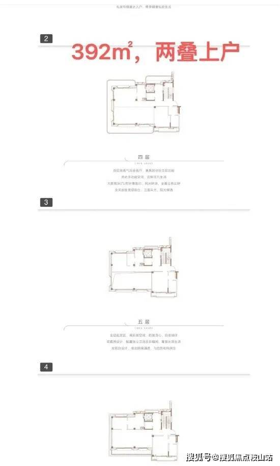 ●产品户型:两叠(上叠392㎡、下叠437㎡),三叠(上叠 285㎡、中叠279㎡、下叠305㎡)