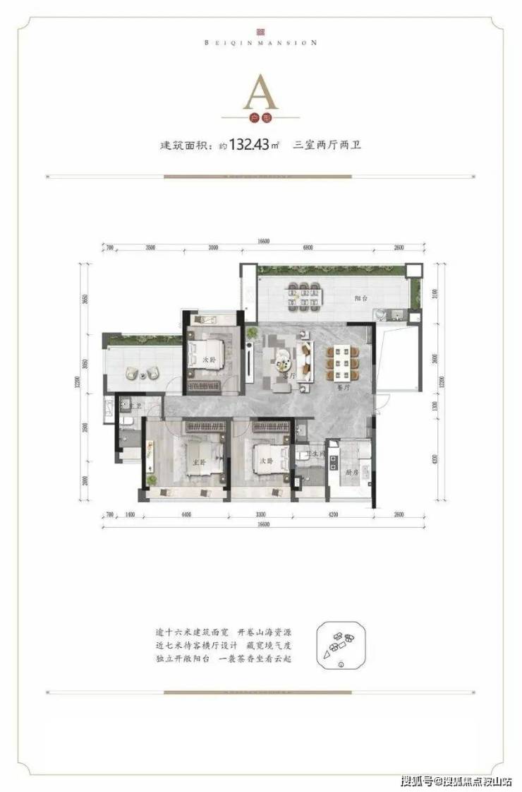 开发商:三亚鼎赫房地产开发有限公司预售证号:三房预许字【2021】120号项目特色:世界湾心资源,半小时四大湾区度假圈,榆林湾北国韵山水园林生活;宽境户型:逾16米建筑面宽、约4.2~6.8米横厅设计、逾9米奢阔观景阳台,甄选品牌精装,全龄配套。产品户型:103平,赠送22平,使用面积125平 得房率104%136平,赠送50平,使用面积185平 得房率118%1.主要核心价值,位于主干道榆亚路精致中式山水园林,得房率高,容积率低,超大阳台楼盘价格:330万起总建面:28067.11㎡容积率:2.0产权年限:70年住宅建筑密度:19.98%绿地率:约40%预计交房时间:2023.10.31项目地址:三亚市吉阳区榆亚路 中段(吉阳区政府南2公里)项目介绍三亚北秦华府项目位于三亚榆亚路中段,凤凰岭城市生态景区东麓,吉阳区政府南约2公里,紧邻三亚旅游主轴——榆亚路,快速通达四大湾区:大东海、亚龙湾、三亚湾、海棠湾,实现三亚半小时旅居度假生活;距离环岛高铁亚龙湾站约7公里,距离三亚站约15公里,距离三亚凤凰机场25公里;15分钟即可优享三亚市中医院、三亚华侨医院、广州中医药大学附属粤海医院等医疗资源,距离解放军301医院约20分钟车程。北秦华府园林景观以叠石奇景,精巧花木为主,赋山形,观山语,呈现了一种如居山中的归家体验。二进镜水院,以水景、曲桥、角亭为主,呈现了符合中式生活特色的园林空间。项目园林以环绕式连廊、点景亭台、曲桥竹径,将山水园境串联,归家、入户、观景、会友合而为一,一步一景,归心生活。