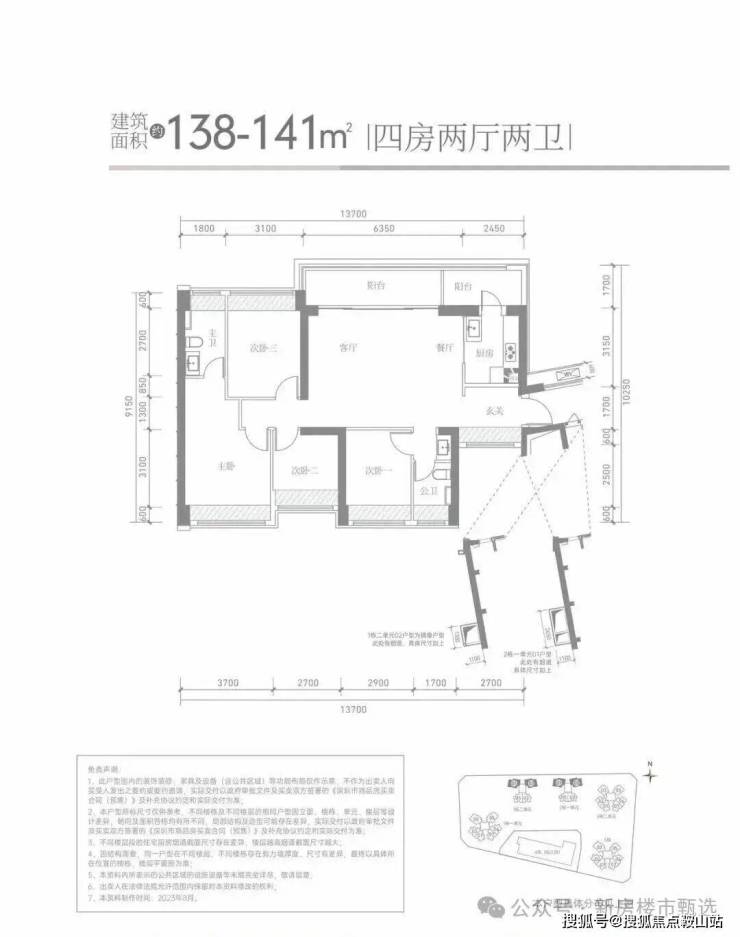139㎡的4房2厅2卫,设计的横厅南北通透格局,客餐厅6.35米宽,进门独立玄关,4个卧室分别做到了3.7米/3.1米/2.9米/2.7米的宽度,U型厨房,公卫三段式分离设计,得房率:75.31%(不含赠送),带大阳台进深1.7米,长8.8米,主朝西北或东北向,看科学公园景观。