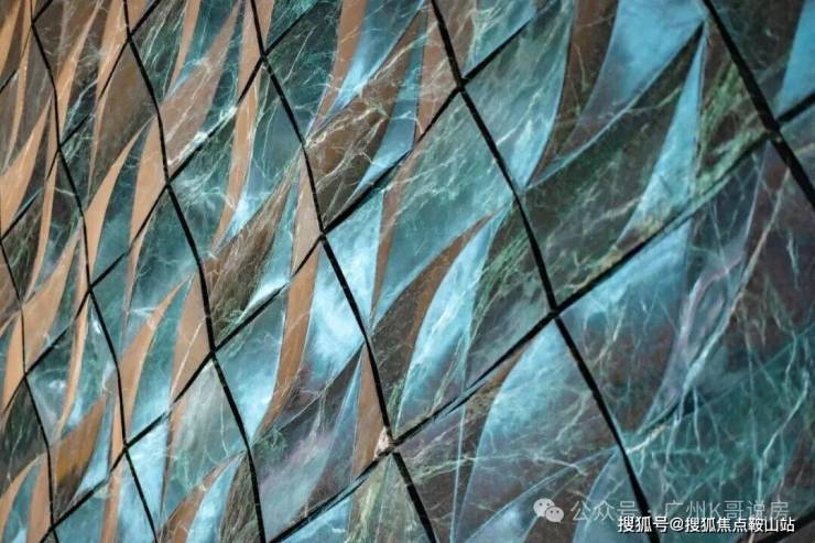 这种材质一般只在高档会所、豪宅上做一些点缀,而都荟天珺整整做了一整面墙!