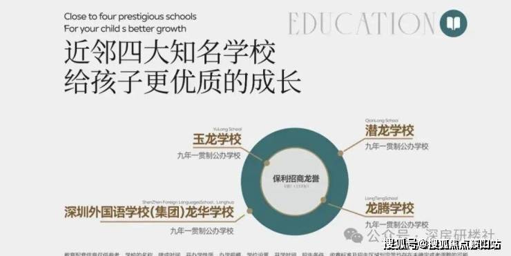 教育方面,项目距离深圳外国语学校(龙华学校)773米,步行11分钟,深国外是龙华排名前三的名校。周边还有玉龙学校(距离941米,步行约14分钟)、龙腾学校(新学校,距离847米,步行约11分钟)等教育资源。不过据悉,保利招商龙誉与深外龙华校区小学无缘,项目在新建的龙腾学校范围内,初中为龙腾学校、玉龙学校和深外龙华校区三所学校共享学区。