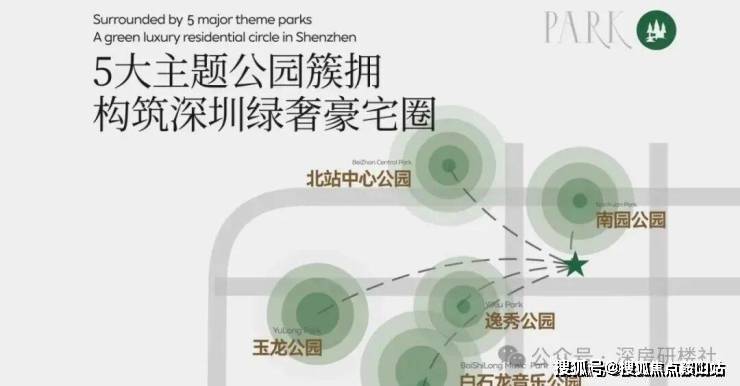 南园公园、北站中心公园、逸秀公园、白石龙音乐公园、玉龙公园环绕;