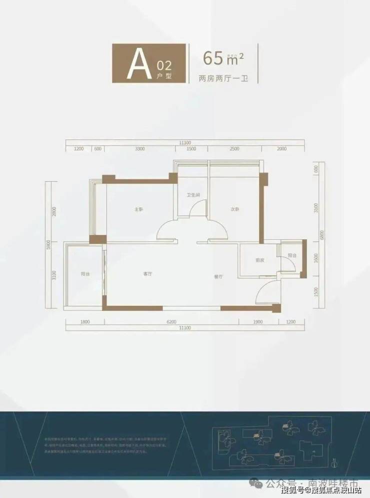 65㎡的2房1卫,其中A1-02、03户型互镜像
