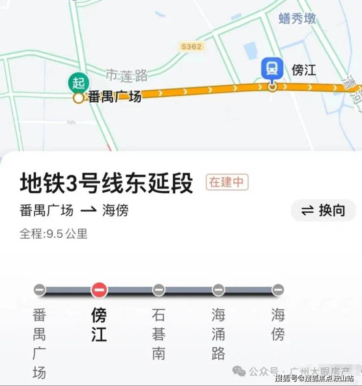 与3号线东延段傍江站直线距离约500米,从小区出发做地铁去番禺广场只需要一个站,乘坐地铁前往珠江新城也不需要换乘。