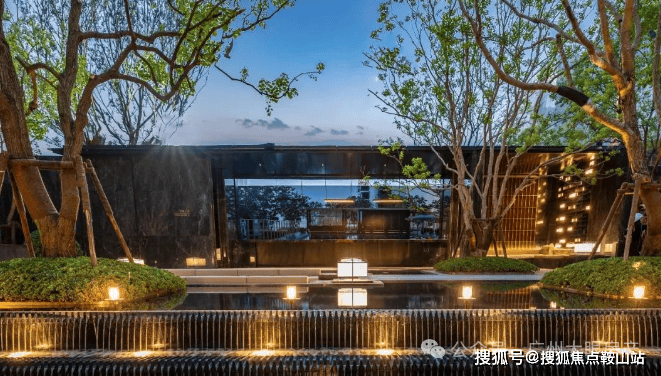 同时,参照京都安缦,打造的下沉式庭院,也与周边的茂林、叠水深度交织。在水畔林间,眼前宛若天开一境,营造出让人静下来,冥思的诗意场景。