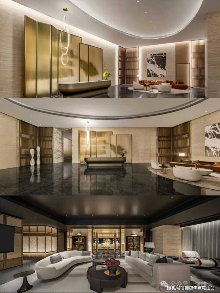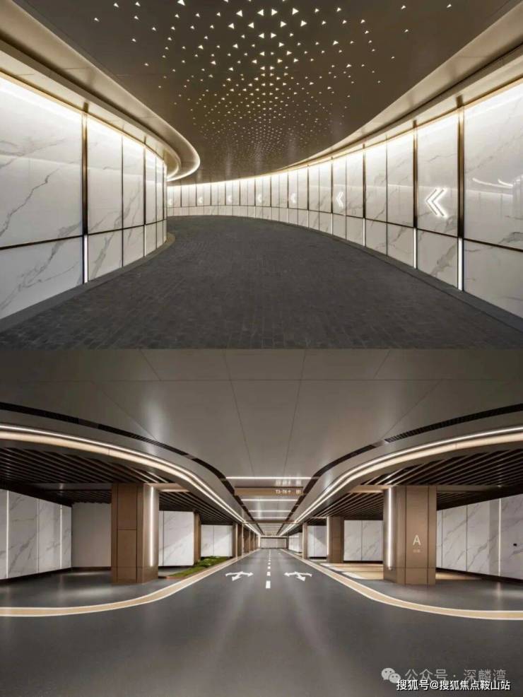 一行人在负一楼停车场汇合后,无不感叹高档又奢华的车库,尤其车库天花板的装饰设计尽显雍容华贵。入户大堂的豁然开朗,酒店式落客区的精奢细节,让人叹为观止。