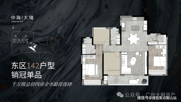 东区只有3栋住宅,产品和居住氛围纯粹,全是四房产品,离广州大环线11号线地铁步行仅约40米,离海珠万达广场、合生广场等大型商业体更近,和项目配套的滨水商业仅一桥之隔,下楼步行即能到达高定泛会所。
