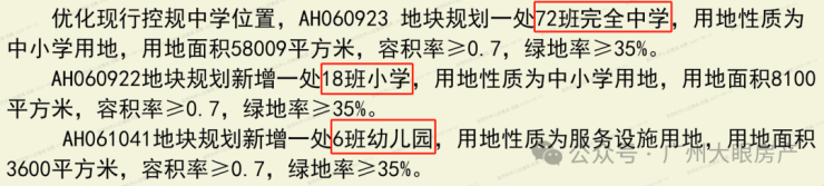 项目地块西侧规划了15年的教育资源地块,由政府引进中大附中办学(一个托儿所、一个6班幼儿园、一个18班小学和一个72班完全中学),要建成广州市综合排名前5的学校。