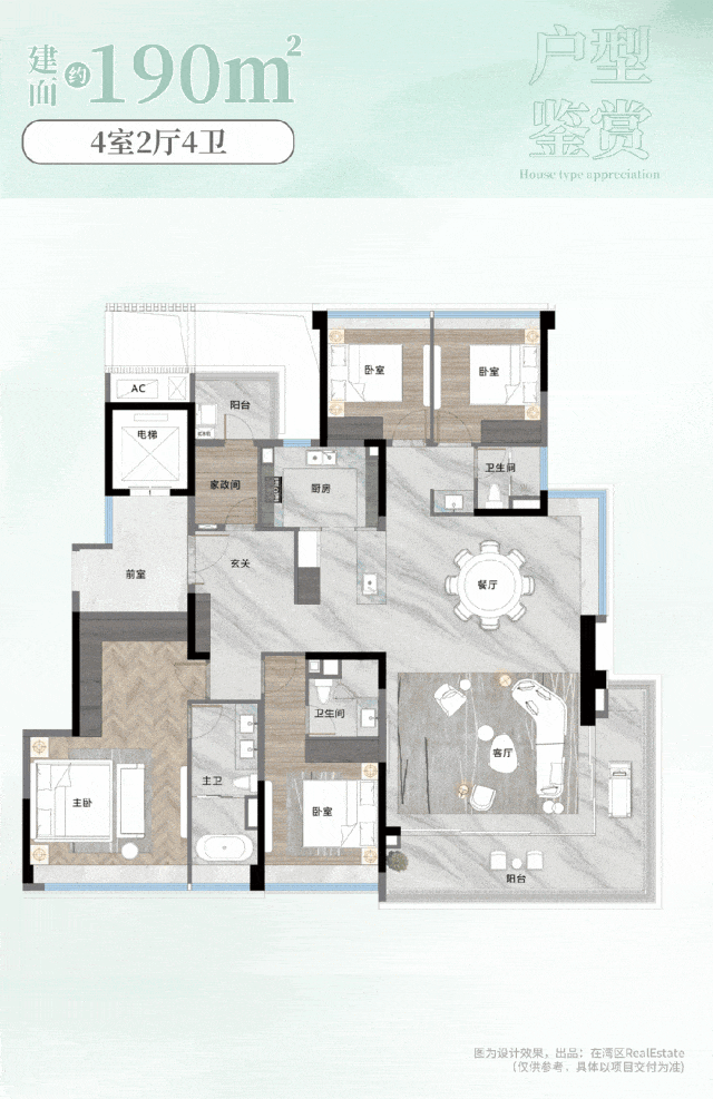 越秀观樾建面约190平的四房户型设计,确实展现了其卓越的品质和出色的居住体验,每一项细节都彰显着广州“天花板水平”的居住标准。