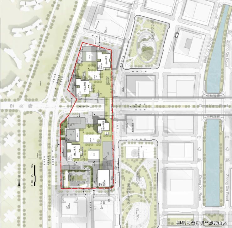 建筑规划:5栋超高层塔楼(4栋住宅+1栋公寓),高度分别为150米、200米、200米、240米(住宅)及250米(公寓)