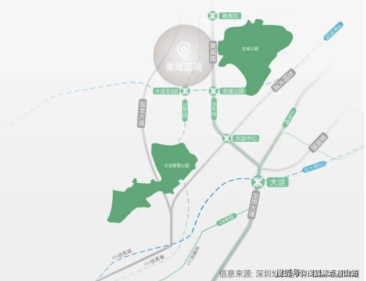 地铁:直线距离16号线龙城公园站约800m,两站直达大运枢纽站,接驳3/14号线和深大城际(建设中);直线距离21号线大运北站(规划中)约600m;快速连接全城。
