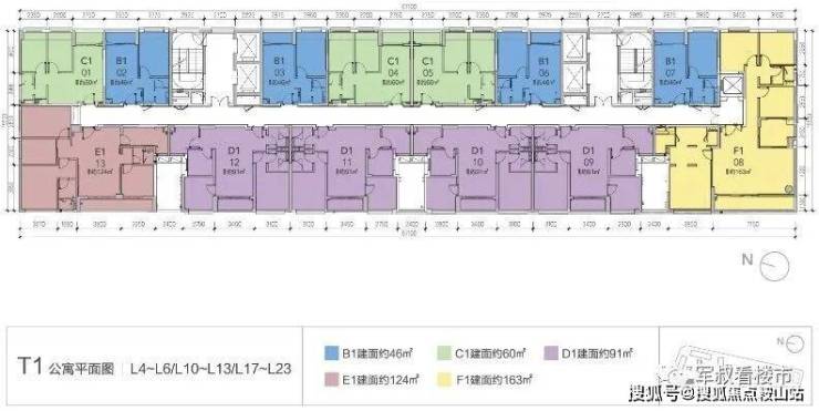 T1栋五梯13户,T2栋6梯28户