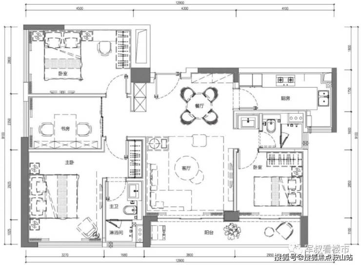 T1栋主力124㎡户型(该户型装修费7500/㎡)