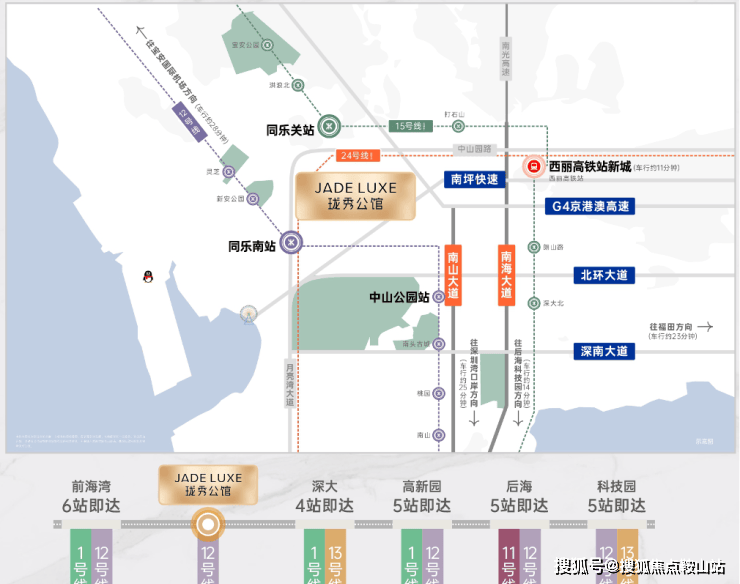 15号线同乐关站(在建中,预计2028年12月开通),串联宝中/前海/深圳湾/西丽,也被称为深圳“一环线”,本项目为环线上的重要一环;
